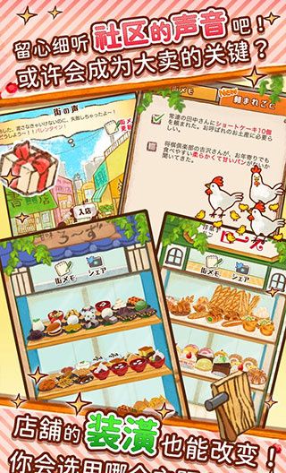 1、洋果子店ROSE2官网版游戏中,玩家可以制作更多口味的面包来宣传面包店,使洋果子店的口碑更好。