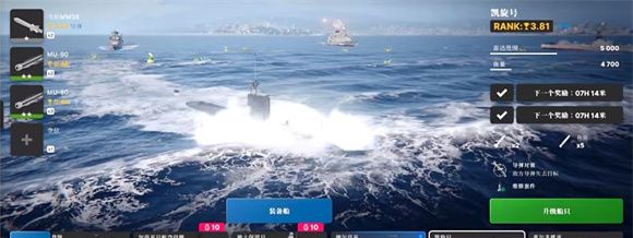 4、凯旋号潜艇推荐玩家携带m190鱼雷,导弹推荐携带飞鱼,然后用凯旋号潜艇和德尔兹基战舰继续刷钱到十五级。