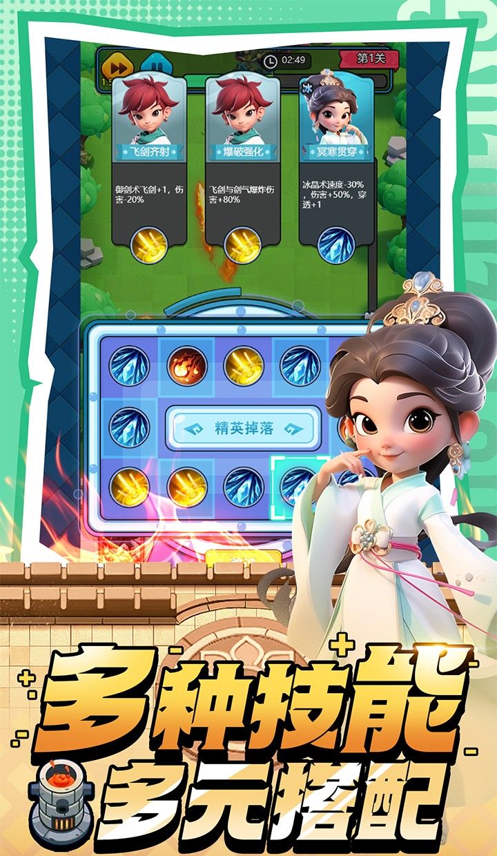 3、选择不同的角色组合作战,割草竞技对战更加具有挑战性。