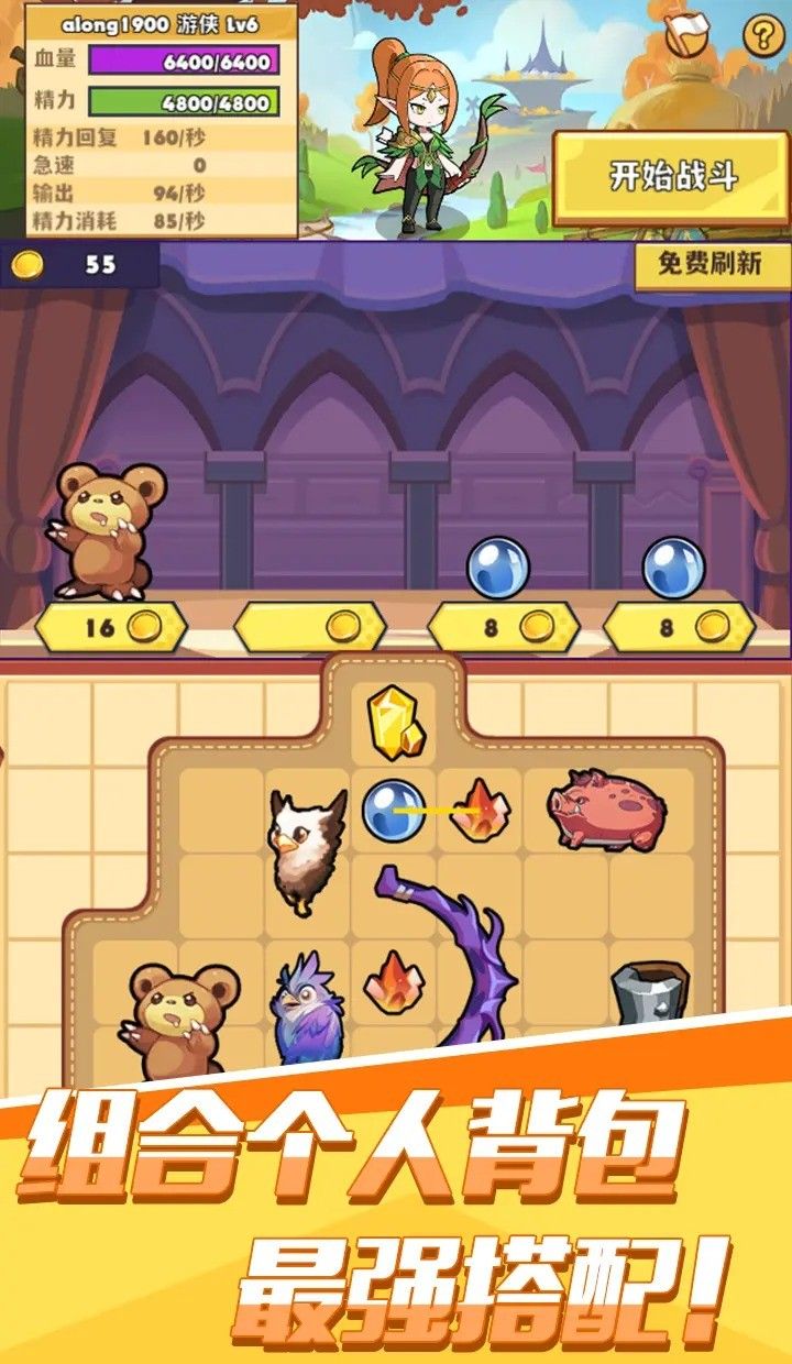 背包传说正版是一款轻度策略对战类游戏,正如它的名字一样,在游戏中具有背包元素,并且与市面上的背包塔防类游戏不同的是,本作在合成上拥有自己的一套体系,不是简单无脑的二合一升级,通过策略的合成组合来装满背包,然后匹配其他玩家进行对战,看看谁才是真正的背包王者,游戏还设计了局外养成,可以对各种装备进行升级,数值的提升不会直观的看到,需要在对战中去切身体验,感兴趣的话就和你的小伙伴来一起下载体验吧。