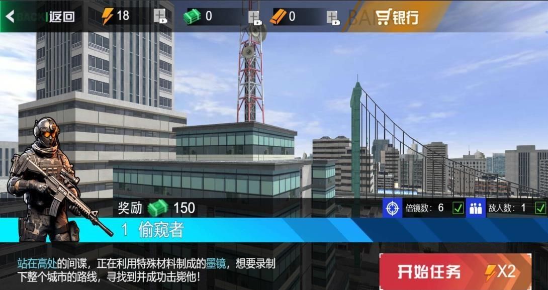 2、在每个任务中,玩家需要观察敌人的位置,选择最佳射击角度,并确保一枪击中敌人的致命部位;