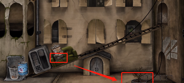 10、绳子断裂后会自动连接盆栽和老人,我们将盆栽推下,就可以引导老人回到房间