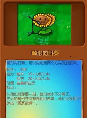 6.畸形向日葵:倚形向日葵,可以向前后两个方向发射歌声。