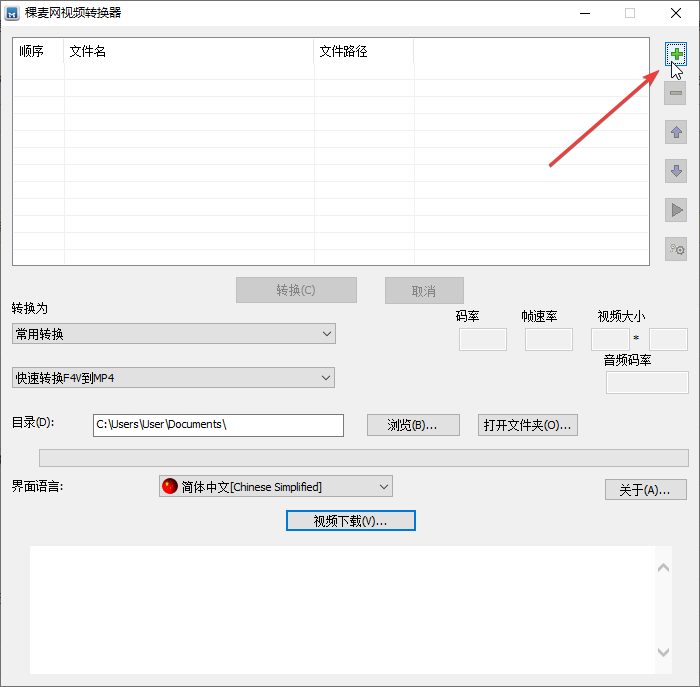 1、在系统软件园下载安装稞麦视频转换器并打开,点击右上角的+号,选择需要转换格式的视频