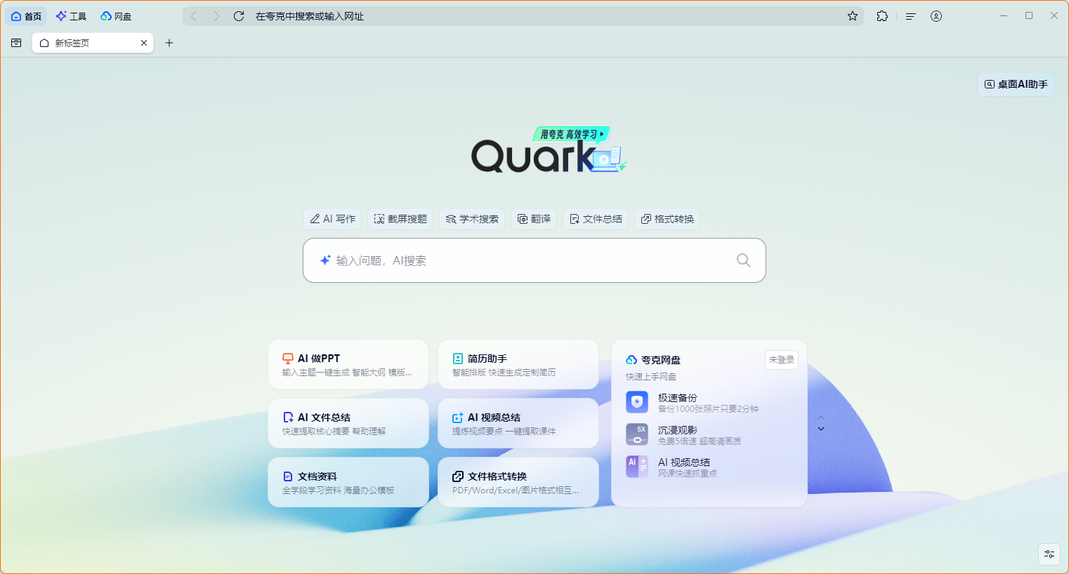 夸克浏览器PC版是一款简洁高效的网络浏览器,拥有强大的AI搜索功能,可以迅速、精准、无广告地为你带来所需内容,还提供了多种其他搜索引擎,满足各种搜索需求。支持扩展插件,根据个人需要进行功能定制,还有丰富的外观主题可以下载使用。内置夸克网盘,无需下载独立客户端,非常方便。