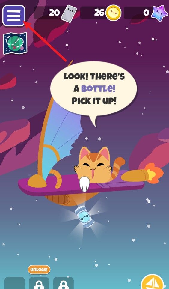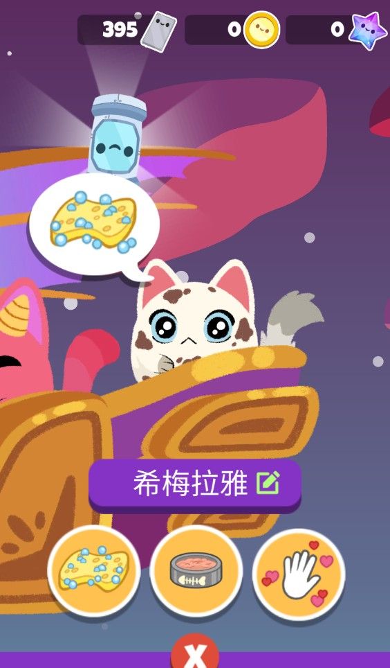 6、升级飞船后我们还获得了一只宠物猫,可以跟她进行趣味的互动哦。