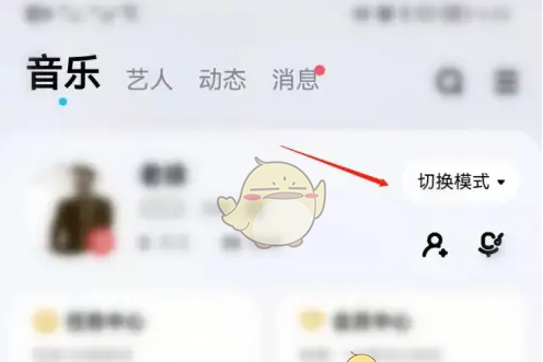 1、打开酷狗音乐app进入“我”页面,点击“切换模式”