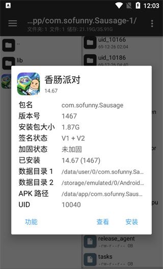 2、找到并点击自己需要提取安装包的游戏(以香肠派对为例);
