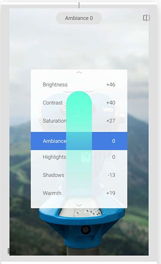 5、大多数调整都是这样工作的:在图像上垂直滚动以选择参数,然后水平滑动以更改参数值。
