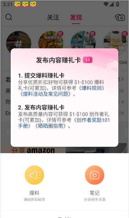 3、这里提供了两种类型,一是爆料、二是笔记,根据自己的需求选择即可。