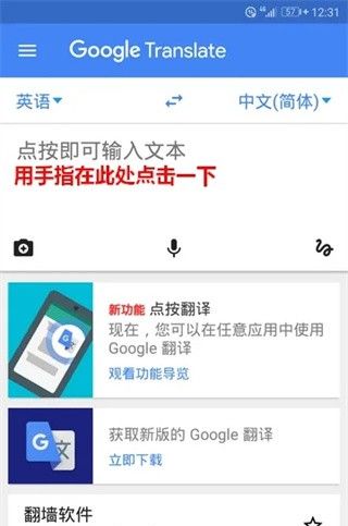 2、打开谷歌翻译的主界面以后,在输入框中用手指点击一下。