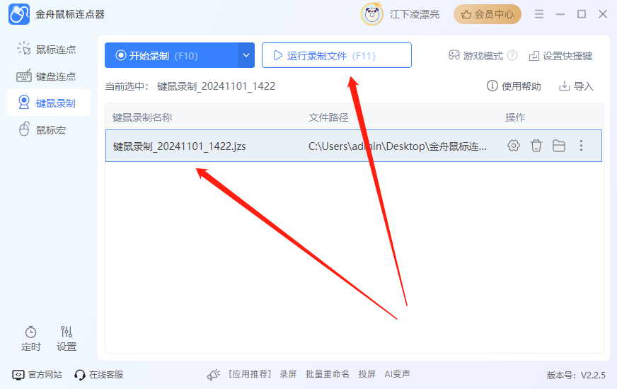 第四步、使用时,选中录制文件,点击运行录制文件就可以了