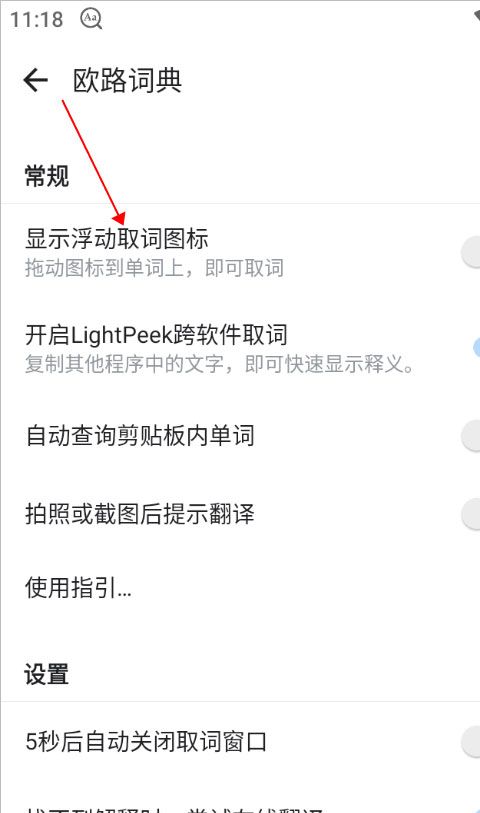 3、开启显示浮动取词图标,拖动图标到单词上,即可取词