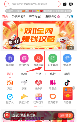 2、点击开启省赚之旅按钮,跳转至应用主界面。