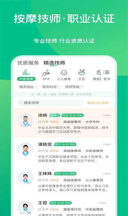 2、用户可以根据自身需求选择自己喜欢的技师、服务项目和上门时间,还可以定制疗程,满足不同用户的个性化需求;