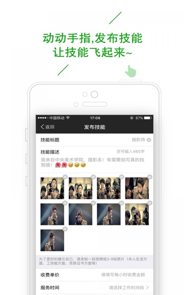 接单挣钱:你可以录制一段视频或上传图片发布你的技能,等待被预约。