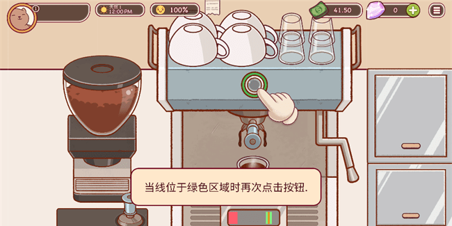 1.进入游戏后点击与顾客的对话,完成对话后进入制作咖啡制作页面。
