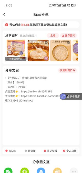 4、点击分享,朋友下单你即可获得佣金。