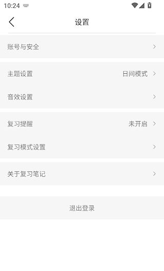 3、在设置中可以设置主题、复习模式。