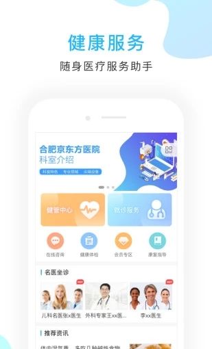 京东方医院软件为用户提供健康体检、健康档案、健康报告等健康服务,并通过线上线下相结合的方式,将就诊前、就诊中、就诊后的各项流程进行合理划分,用户可以在线进行医疗预约,给生活中带来更多的便利,让你省心省力省时,更有名医线上就诊,打造一个全周期、更高效的医疗生态体系。
