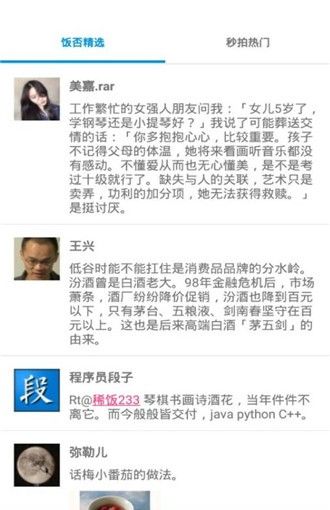 4、饭否精选、秒拍热门,豆瓣推荐等等。