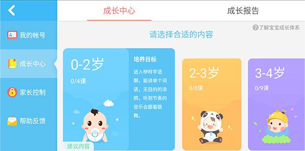 4、在成长中心选择宝宝的合适的内容进行学习。