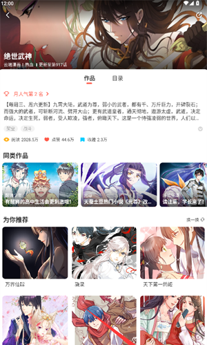 2、首页推荐会每天更新热门漫画下拉可以看到分类榜单和编辑精选帮你快速发现感兴趣的作品。