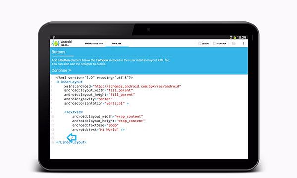 18、界面的设计基本上就结束了。点击返回,我们就可以退回到main.xml文件。看!AIDE已经为我们自动写好了所有的代码,多么神奇啊!