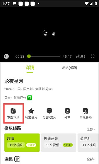 2、进入到播放界面下,我们能够看到左边的下载本地按钮,点击一下。