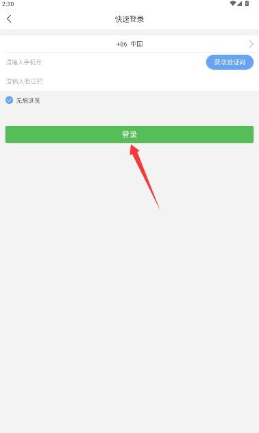 2、选择手机登录选项,跳转至快速登录页面。