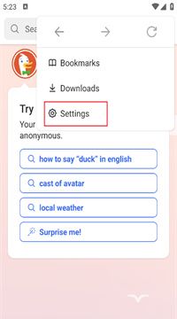 2、X浏览器默认的搜索引擎是“百度" ,不过我们可以到设置中把默认搜索改为Google 或DuckDuckGo 。从主菜单进入设置界面你可以看到切换搜索引擎的选项。
