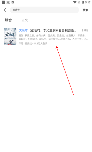 2、如庆余年,输入后点击搜索即可出现搜索结果,点击进入。
