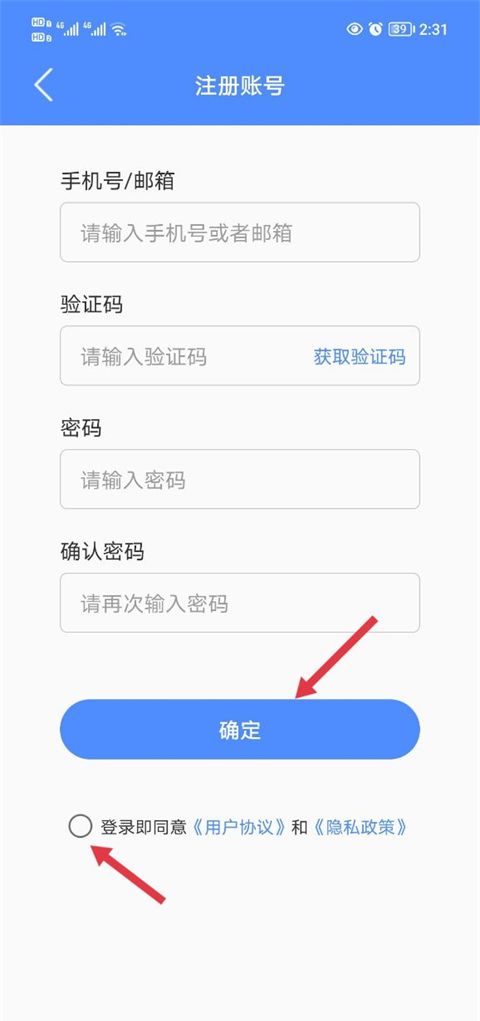 2、填写好相关信息之后,勾选同意协议点击确定就能完成注册登录了。