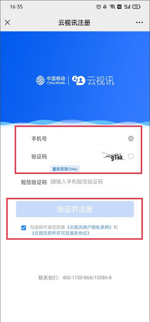 2、输入手机号、验证码和短信验证码进行验证并注册,注册成功后中国移动会发送一个初始密码给你的手机上。