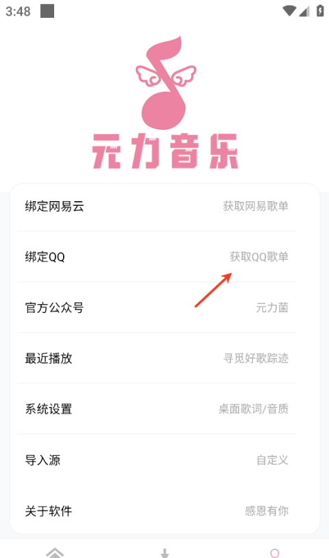 2、输入qq号进行绑定即可,然后在首页就可以点击qq音乐榜单了。