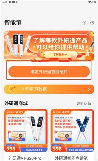 3、未连接的用户点击【我的】-【我的点读笔】-【添加智能笔设备】,选择设备进行绑定即可缓存。