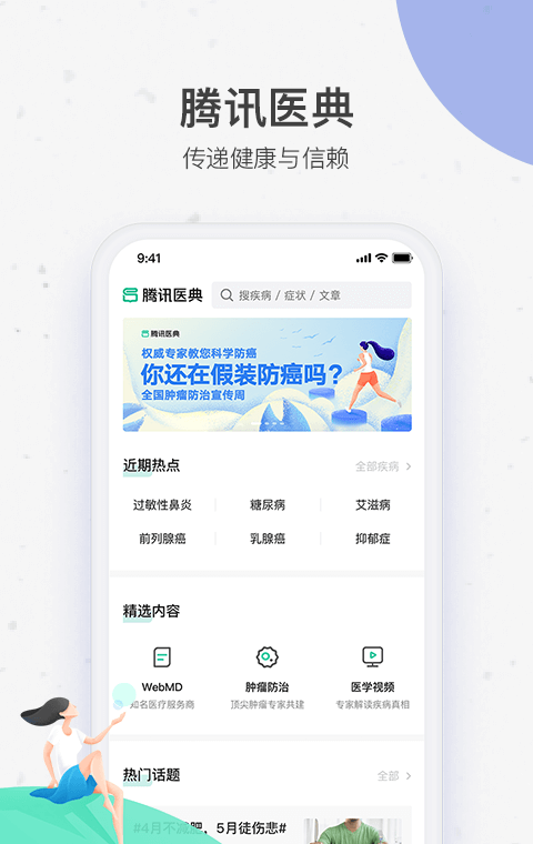 1、腾讯医典是一款集权威性、准确性与易懂性于一体的医疗健康疾病知识软件。