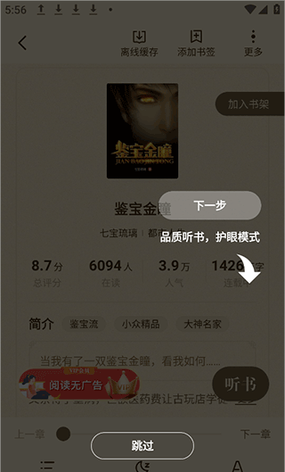 2、听书模式:提供听书功能,让用户通过耳机收听新颖内容,享受不同的阅读体验。