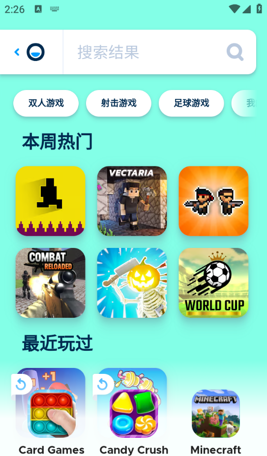 2、首页为玩家提供了海量的游戏资源,包含双人游戏、射击游戏以及足球游戏等类型。