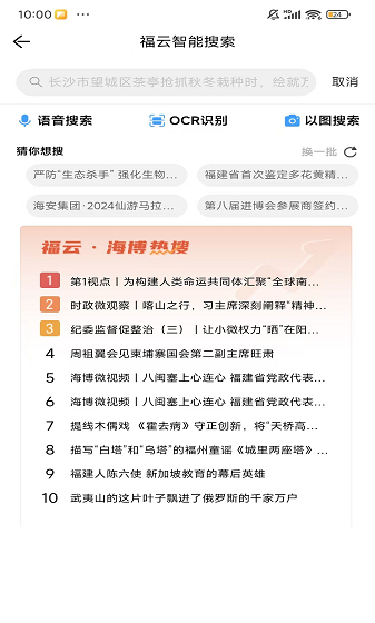 海博TV是一款优质的影视新闻播放软件,每天24小时不间断的更新各类新闻资讯以及热点,更有同步电视直播影视在线可以观看,各种频道都一应俱全,为用户带来新闻影视资源一体化服务。软件中实时更新资讯内容,最新的新闻报道以及突发事件,在这里都能第一时间看到,让你不错过每一条新闻。软件本土民生话题、追踪热点新闻,让你随时随地都可以看到福建热点。实时点播影视剧,想看什么频道直接一键切换就可以,非常的方便。