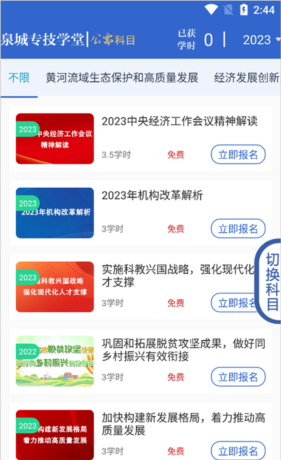 2、然后进入“课程”页面可以选自己想要的科目,点击“立即报名”。
