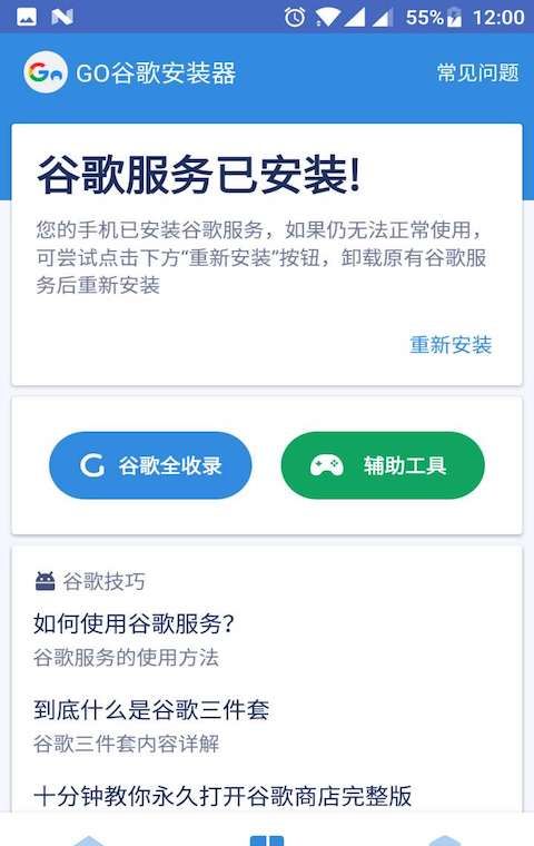 google三件套安装器官方版下载入口是一款可以帮助用户一键安装谷歌服务的软件。这个软件不仅体积小巧,而且非常容易使用。无需下载其他插件或广告,即可轻松启动、安装和使用。它自动检测用户手机是否有谷歌服务框架三件套,如果没有,它可以自动下载更新,让你轻松玩谷歌专属游戏和应用。所有的谷歌应用都可以在你的手机上打开。而且这个软件不仅可以解决Google框架中不存在的一些问题,比如游戏崩溃、黑屏等,还可以通过更新三件套来完成。另外,google三件套安装器官方版下载入口非常安全可靠。它只需要安装应用程序包的许可和将相应的软件版本号与电话型号匹配的许可。绝不会泄露用户信息。下载缺失的谷歌插件后,用户可以选择将其放在不常用软件菜单中,或者直接卸载,不会影响使用。