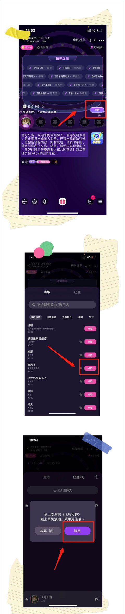 房间创建成功后,就需要涉及到怎么使用啦,按照下面的流程就可以轻松掌握、畅享K歌!