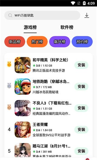 4、游戏板块就特别丰富了,分了新游戏、热门榜、网游榜等等,可以帮助爱玩游戏的小伙伴快速找到适合自己的游戏进行畅玩;