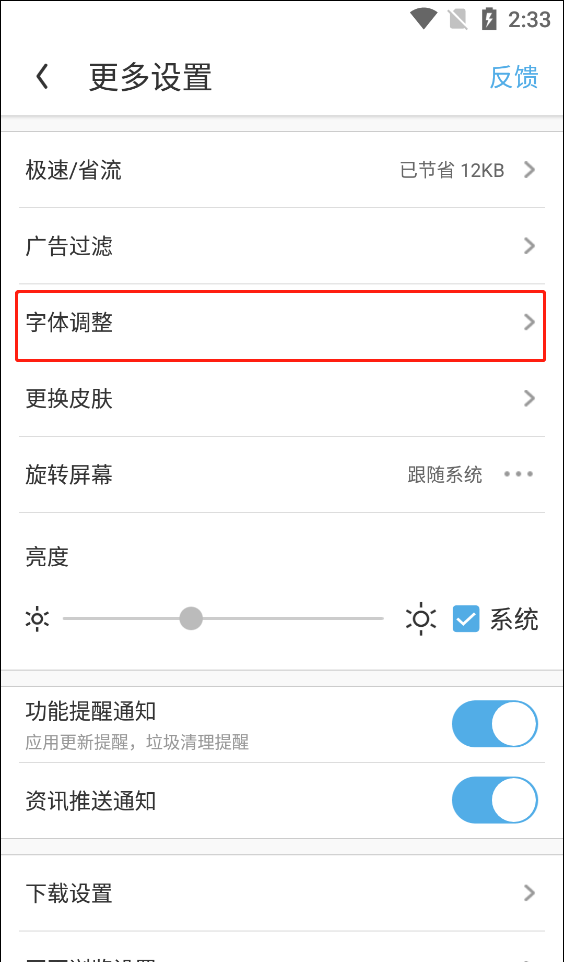 4、进入“字体大小”,滑动滑块可以调字体的大小。