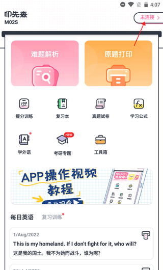 1、进入软件后,点击主页右上角的“未连接”。