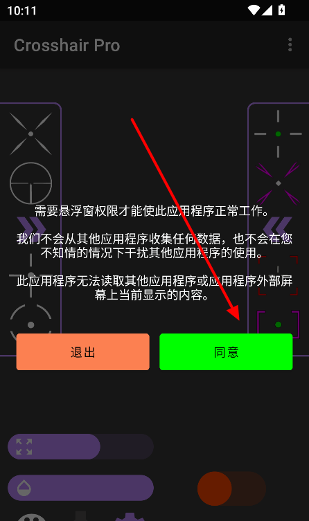 1、本站下载沐泽准心Pro软件,点击同意隐私权限进入