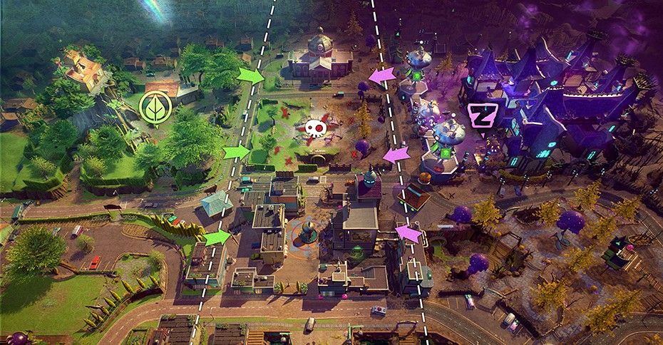 《植物大战僵尸:花园战争2》拥有众多风格迥异的地图,共计12张全新巨大地图,风格涵盖古希腊、中国风、魔幻、童话、科幻等主题。每张地图细节丰富,如后院战场的主城框架设计,僵尸与植物各占一方,中间是战场,从颜色和题材形成鲜明对比。地图中的功能选项设计成场景物件,分布在各处,增加了沉浸感。