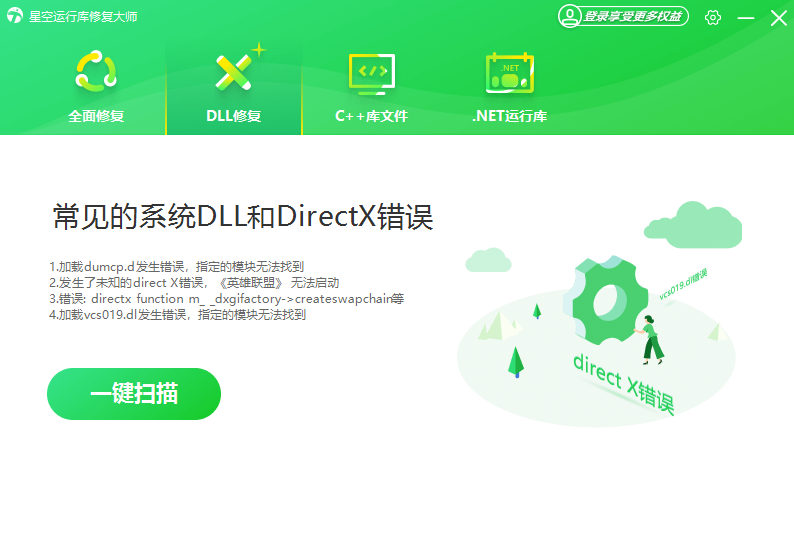 星空运行库修复大师是一款专业的系统修复工具,提供三大核心模式:运行库修复、DLL文件修复、游戏环境修复,具备完整的C++和.NET运行库文件、全方位检测功能,可精准识别并修复软件运行环境中的各类问题。有效减少程序运行时的闪退、掉帧、崩溃等现象,提升系统稳定性,还能有效解决游戏启动报错、程序无法正常启动、崩溃等问题。