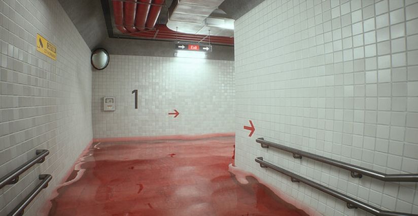 融合空旷走廊、单调灯光与低频噪音,营造熟悉又不安的“后室”式空间,强化心理压迫感。